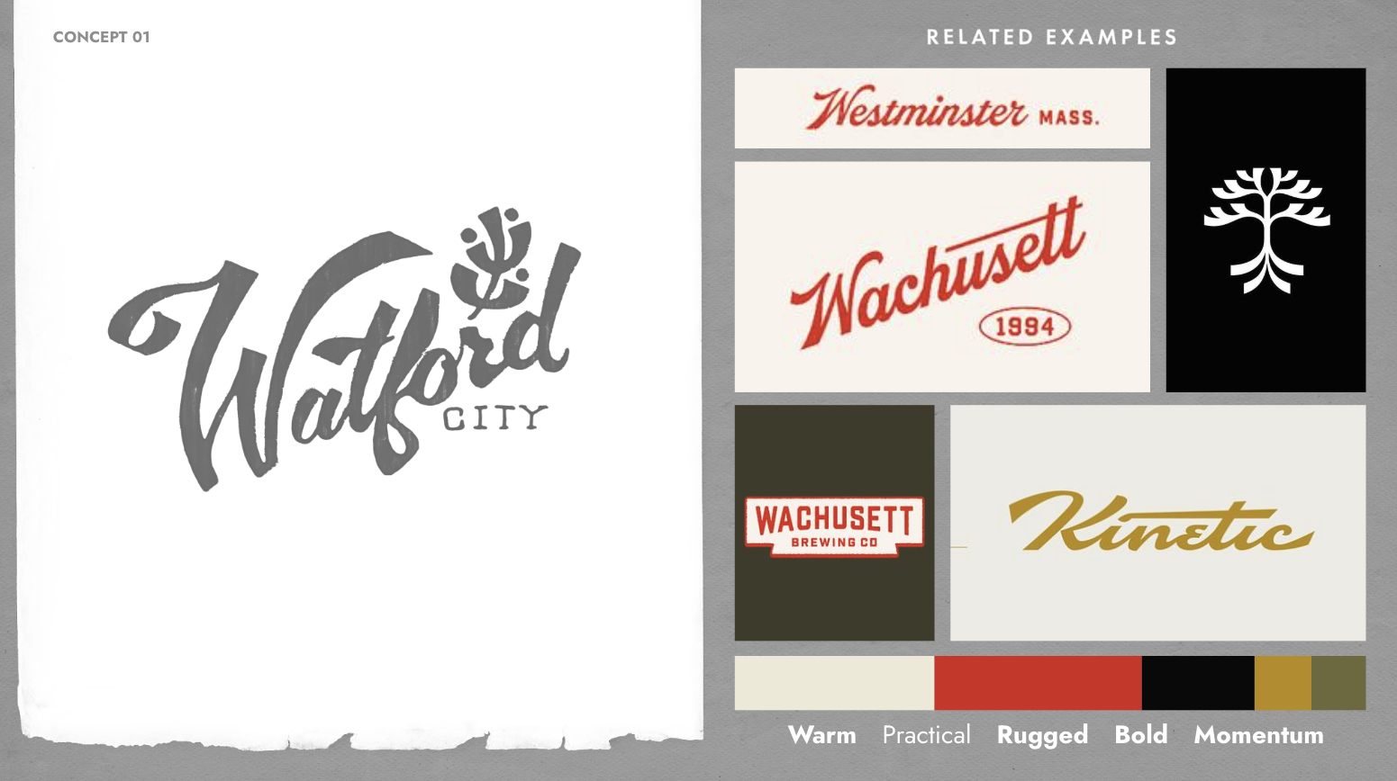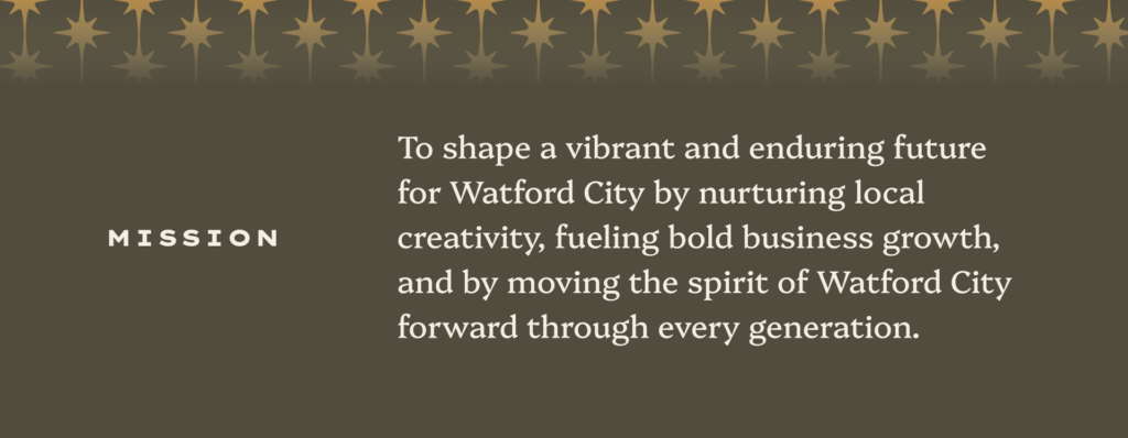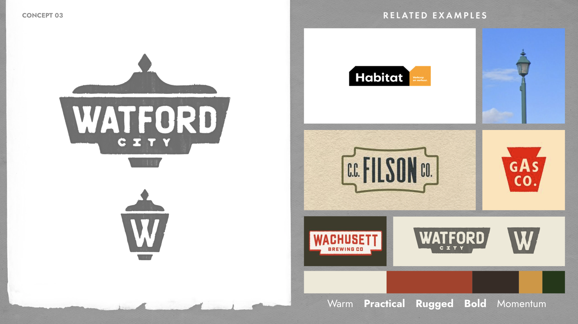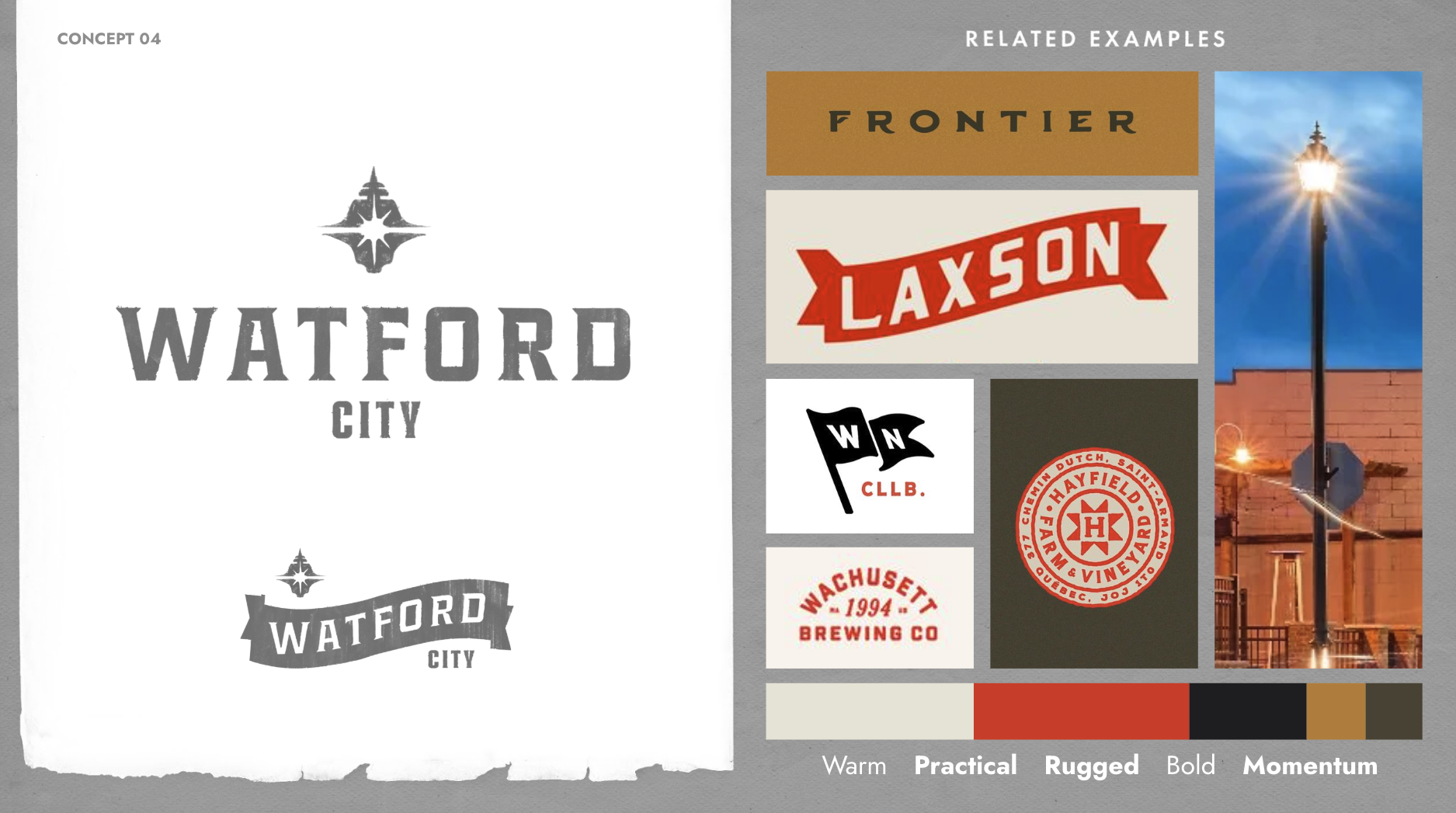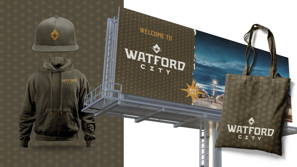 When it was time to select a sketched concept, one design stood out: Concept 4, featuring an abstract streetlight that nods to Watford’s iconic downtown lamp post. The icon represents the city’s welcoming spirit, innovative drive, and rugged surroundings.